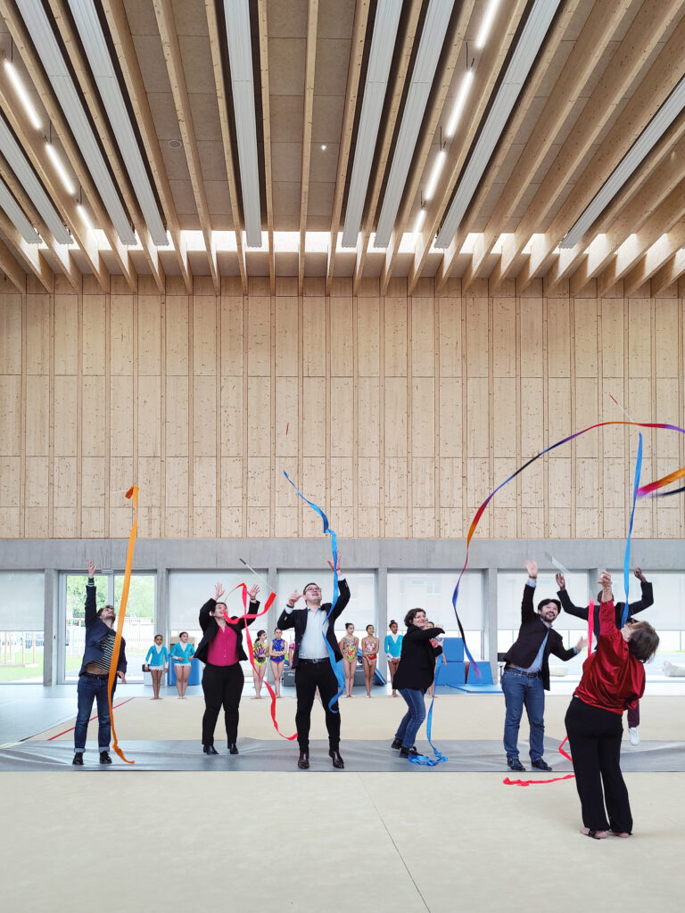Le mercredi 17 avril dernier, Jeanne Barseghian, maire de la Ville et Eurométropole de Strasbourg inaugurait le Gymnase Albert Le Grand, un équipement omnisports (dont la gymnastique rythmique), qui a fait l’objet d’une restructuration sous la houlette de nos deux « architectes pleins d’égards », Caroline Ziajka et Lionel Debs. Lesquels en ont profité pour remettre à l’élue un exemplaire de leur livre, dans lequel, rappelons-le, ils reviennent sur la manière dont ils ont emporté le concours en prenant le risque de restructurer l’équipement tout en préservant un arbre mitoyen…