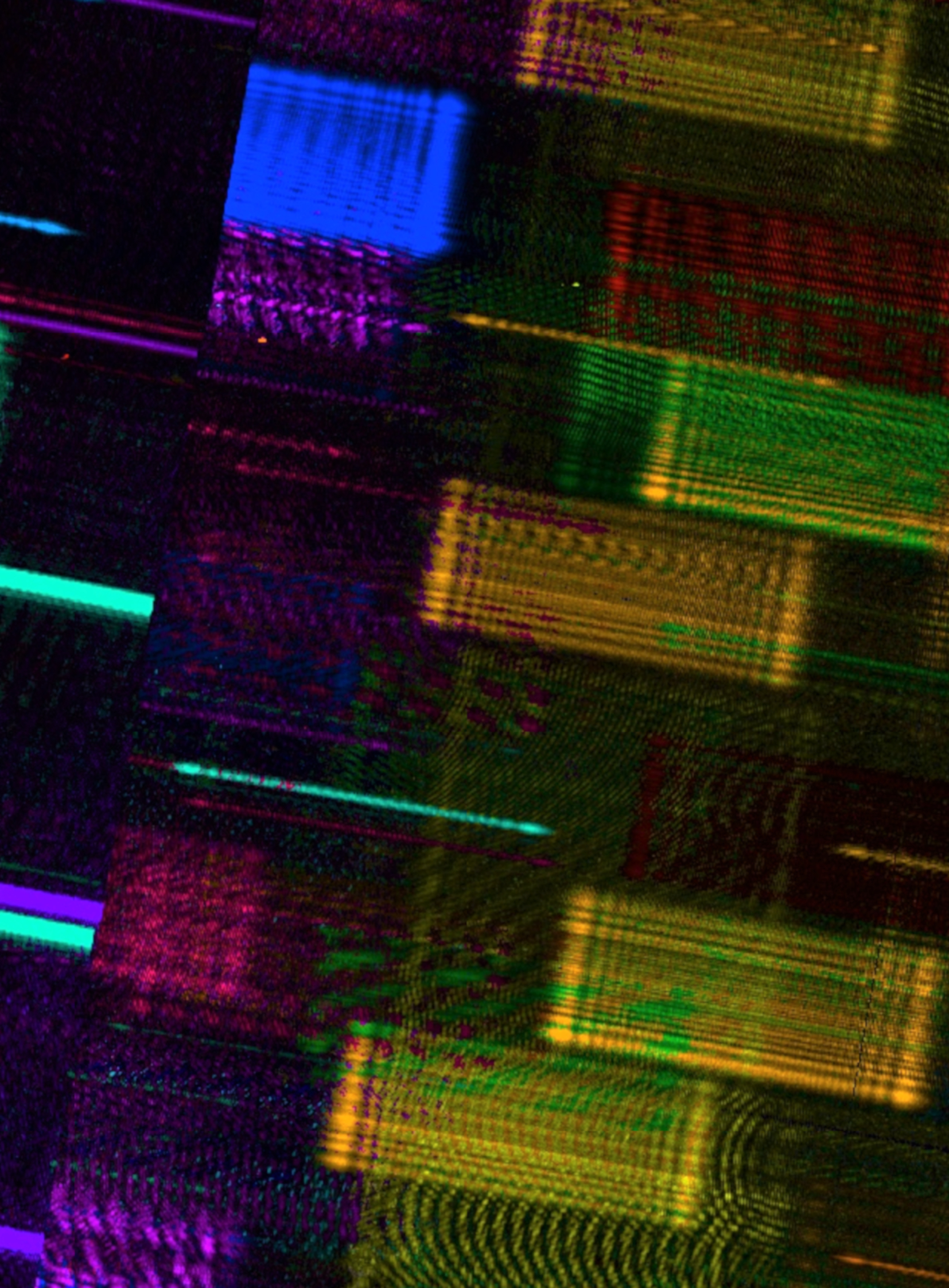 Cette image, capturée en 2024 par le satellite radar Sentinel-1, représente une zone proche du delta du Mississippi. Elle est présentée ici en fausses couleurs, obtenues en combinant les canaux de polarisation VV et VH. Les teintes finales résultent d’une transformation manuelle réalisée avec le logiciel open source GIMP, sans algorithme scientifique particulier, mais avec une approche résolument picturale.