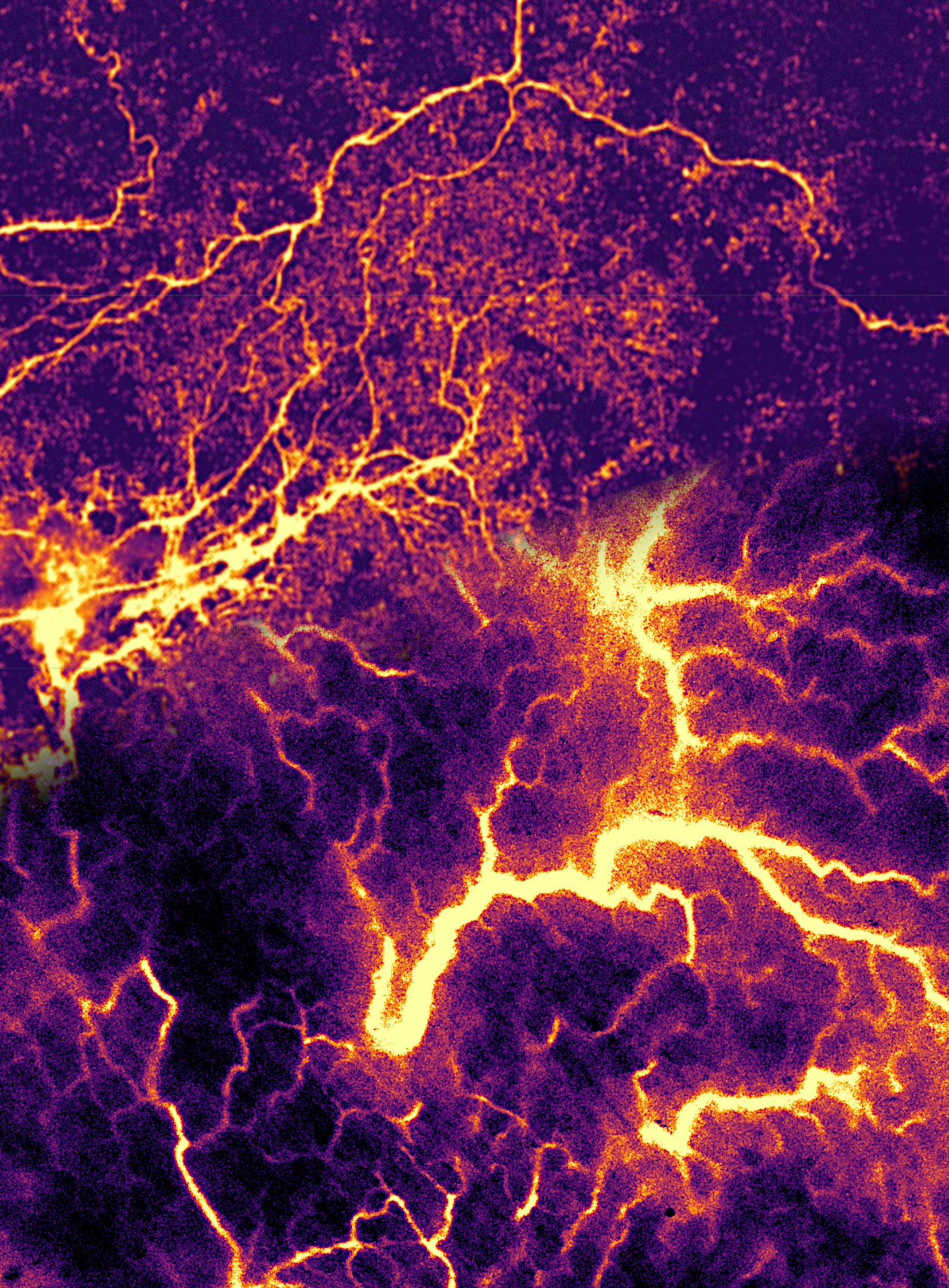 Lors de ma première observation de cette région, le réseau complexe de chenaux, de marécages et de dépôts sédimentaires m’a irrésistiblement évoqué la structure dendritique d’un neurone.
