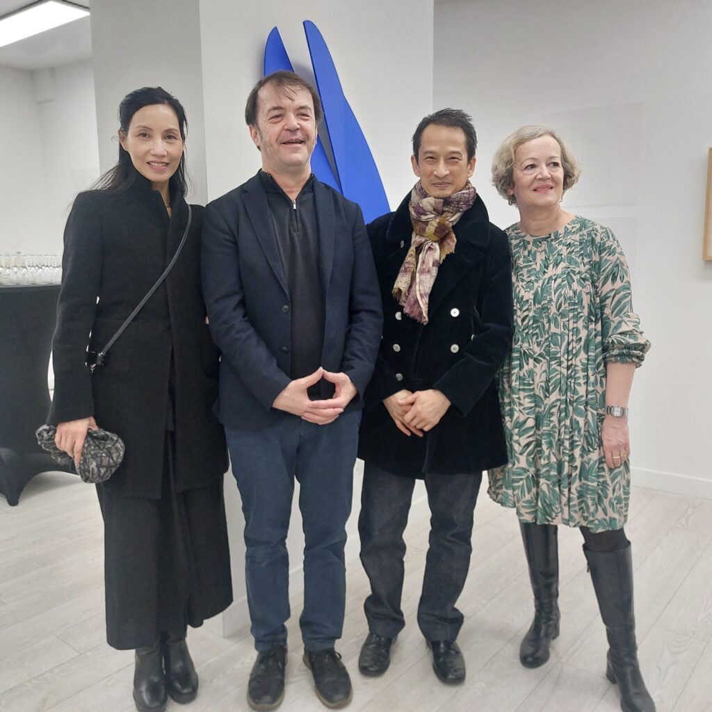 La soirée réserva bien d’autres surprises, comme celle de croiser des visiteurs aussi inattendus que… l’actrice et peintre Tran Nu Yên Khê et le réalisateur Trần Anh Hùng. auquel on doit notamment L’odeur de la Papaye verte dans lequel la première joue. Merci à Catherine Véglio (à droite sur la photo), auteure du roman Des vies sans refuge (Sérendip’éditions, 2024), d’avoir eu l’idée de les convier à cette soirée – elle venait de faire leur connaissance en décembre dernier à l’occasion de la remise du Grand Prix 2024… de l’Académie de la viande !